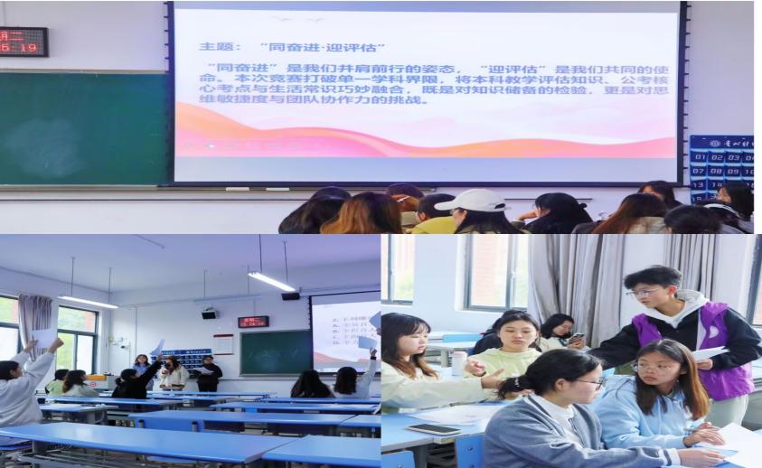 (本讯网:王雨、王国攀 报道|摄影 邹莉莎、陈渲怡 )为积极迎接本科教育教学审核评估,充分展现公管学子激情昂扬的状态,10月21日,公共管理学院团委举办了“同奋进,迎评估”应知应会知识竞赛。竞赛在贵州财经大学勤学楼2-7成功举行。此次竞赛旨在巩固同学们的迎评知识点,从而达到以评促建、以评促改、以评促学的目标。学院各年级学生代表纷纷参与其中,现场气氛热烈。